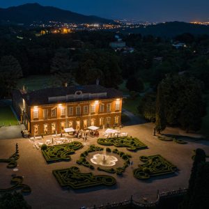 La location dispone di ampie sale interne che possono comodamente ospitare fino a 170 invitati. E caratterizzata da linee armoniose e da una struttura squisitamente elegante che ne fanno una location perfetta per il matrimonio. È situata all’interno di un ampio parco ricco di decorazioni floreali che contiene anche un magnifico giardino all’italiana, impreziosito da specie botaniche autoctone ed esotiche.